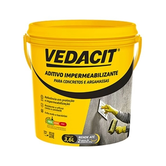 O Imperbeabilizante Vedacit é um aditivo indicado para uso reservatórios e canalizações de água, pisos e concretos.