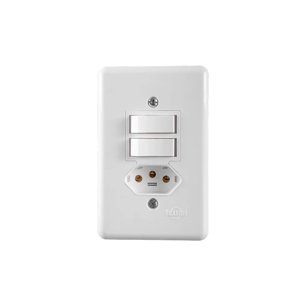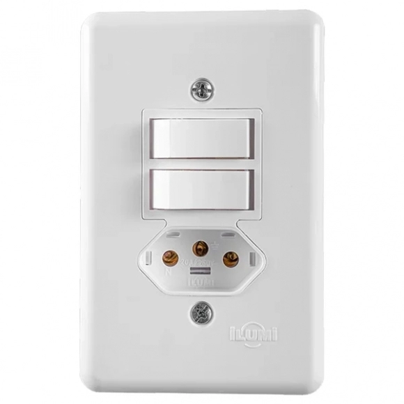 ELETRICA>INTERRUPTORES/TOMADAS>CONJ C/PLACA 4X2 BR>CJ ILUMI 2 INTER SIMPLES 6A C/TOMADA 2P+T 10A 250V STYLUS REF 20210