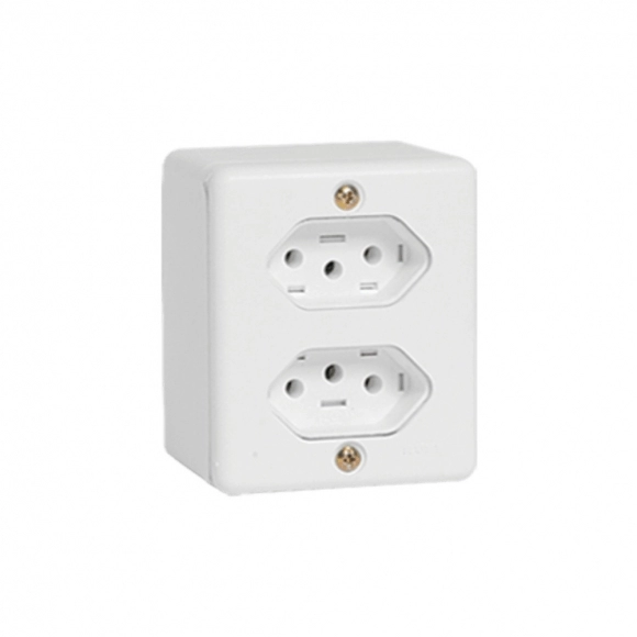 ELETRICA>INTERRUPTORES/TOMADAS>CONJ C/PLACA 4X2 BR>CJ ILUMI 2 TOMADAS 2P+T 10A 250V BOX REF 63120