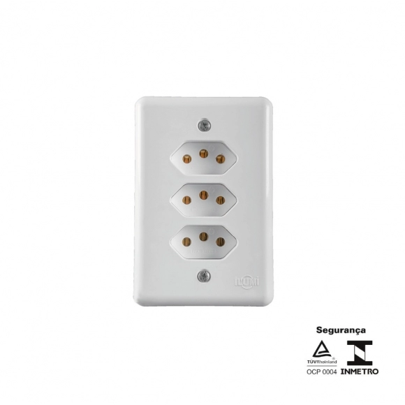 ELETRICA>INTERRUPTORES/TOMADAS>CONJ C/PLACA 4X2 BR>CJ ILUMI 3 TOMADAS 2P+T 10A 250V MONOBLOCO STYLUS REF 201201