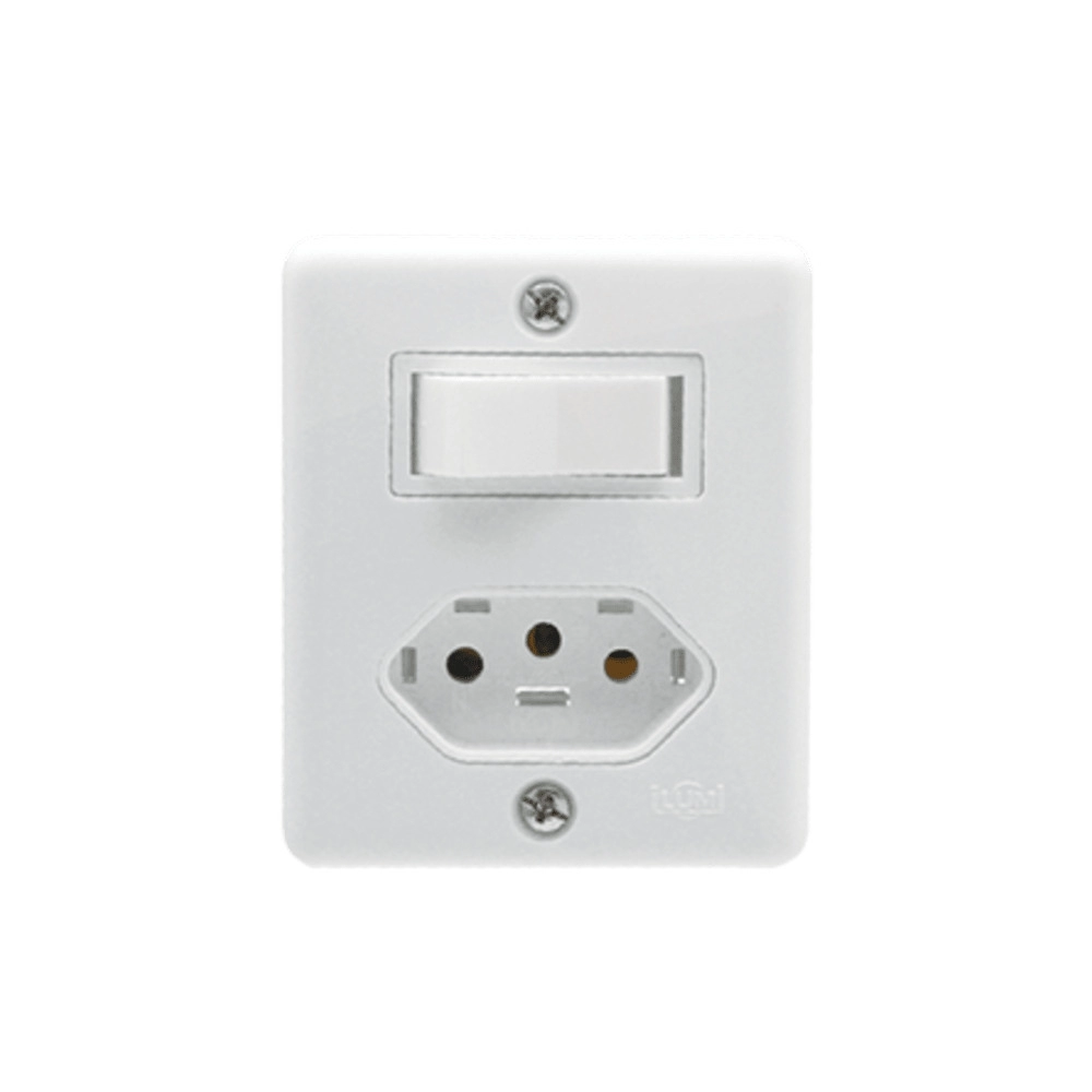 ELETRICA>INTERRUPTORES/TOMADAS>CONJ C/PLACA 4X2 BR>CJ ILUMI INTER PARALELO 6A C/TOMADA 2P+T 10A 250V BOX REF 63280