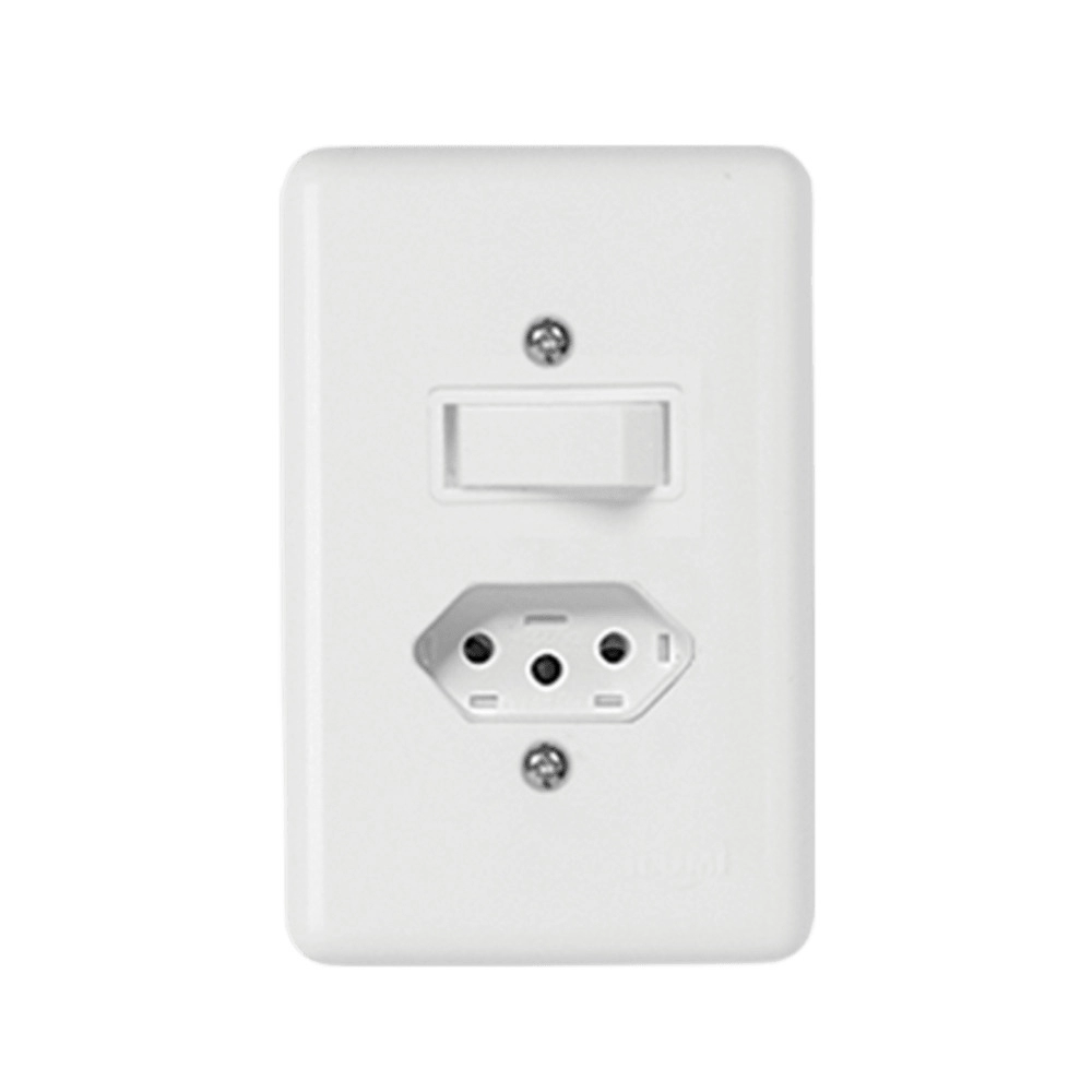 ELETRICA>INTERRUPTORES/TOMADAS>CONJ C/PLACA 4X2 BR>CJ ILUMI INTER SIMPLES 6A C/ TOMADA 2P+T 10A 250V STYLUS REF 20200