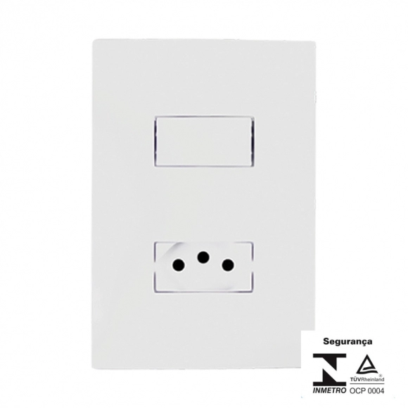 ELETRICA>INTERRUPTORES/TOMADAS>CONJ C/PLACA 4X2 BR>CJ INTERRUPTOR ILUMI SIMPLES + TOMADA 10A I9 250V REF 94200