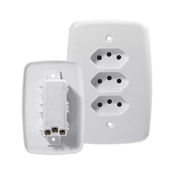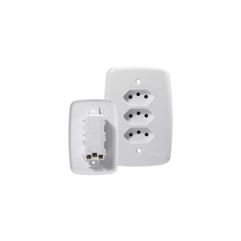 ELETRICA>INTERRUPTORES/TOMADAS>CONJ C/ PLACA>CONJ PLUZIE IDEA BCO 3 TOMA C/PLACA 10A 4201
