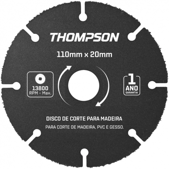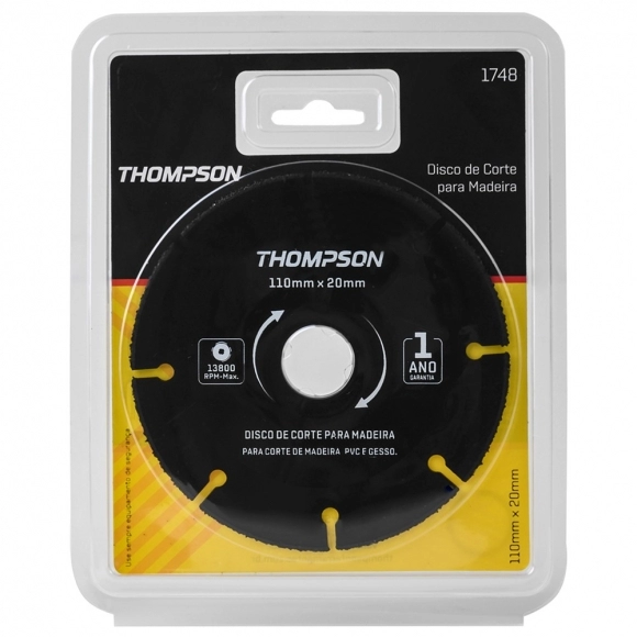 FERRAMENTA DE CORTE E FIXAÇÃO>DISCOS>DISCO DIAMANTADO>DISCO TUNGSTENIO THOMPSON P/MADEIRA 4.1/2 110MM REF 1748