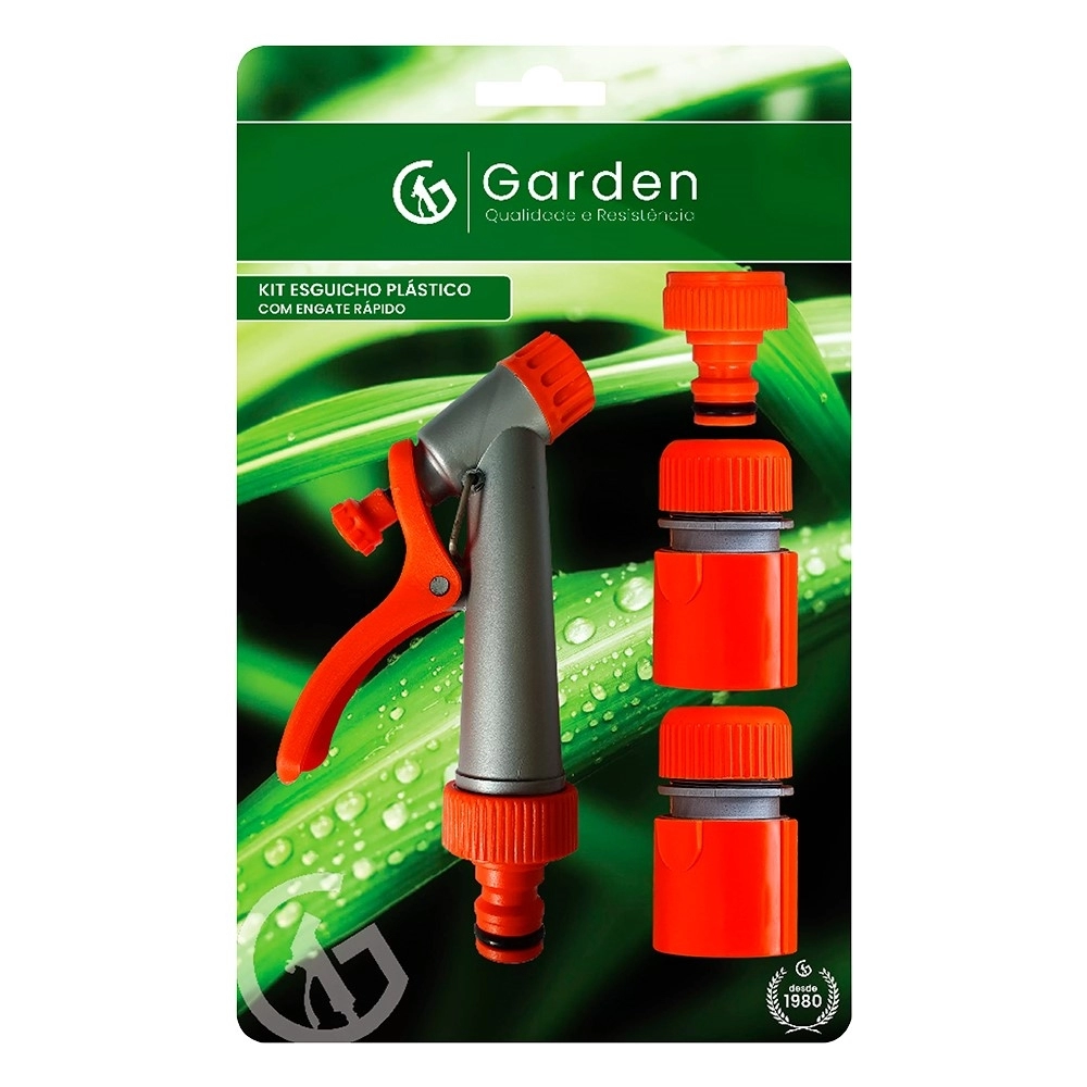 MANGUEIRAS E ACESSORIOS>ACESSORIOS>ESGUICHO KIT>KIT ESGUICHO RAPIDO GARDEN C/2 ENGATES E PINO FEMEA 3/4\" REF KIT-12705E