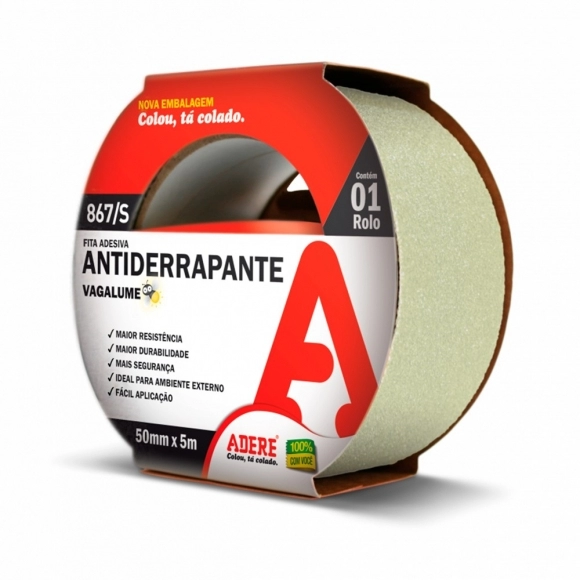 A Fita Antiderrapante Adere 50mm x 5m Vagalume foi desenvolvida para proporcionar máxima segurança e visibilidade em ambientes com pouca iluminação. Seu revestimento fotoluminescente (que brilha no escuro) garante sinalização noturna eficiente, ajudando a prevenir escorregões e quedas em escadas, rampas e corredores. Produzida com material resistente e adesivo de alta performance, é ideal para áreas de grande circulação e uso profissional.