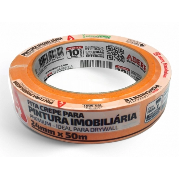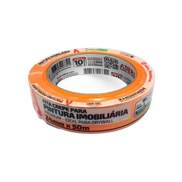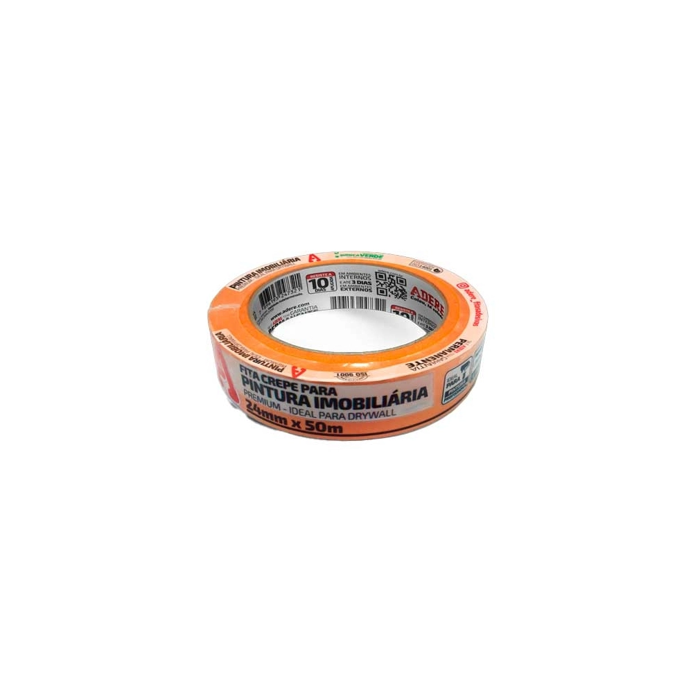 A Fita Crepe Adere A128RLS Laranja 24mm x 50m é indicada para pinturas imobiliárias, reformas e acabamentos profissionais. Produzida com papel crepado tratado e adesivo de alta qualidade, garante excelente aderência, remoção limpa e definição precisa de bordas. A sua cor laranja vibrante proporciona maior visibilidade, facilitando o mascaramento em paredes, portas, janelas e rodapés, mesmo em ambientes com iluminação reduzida.
