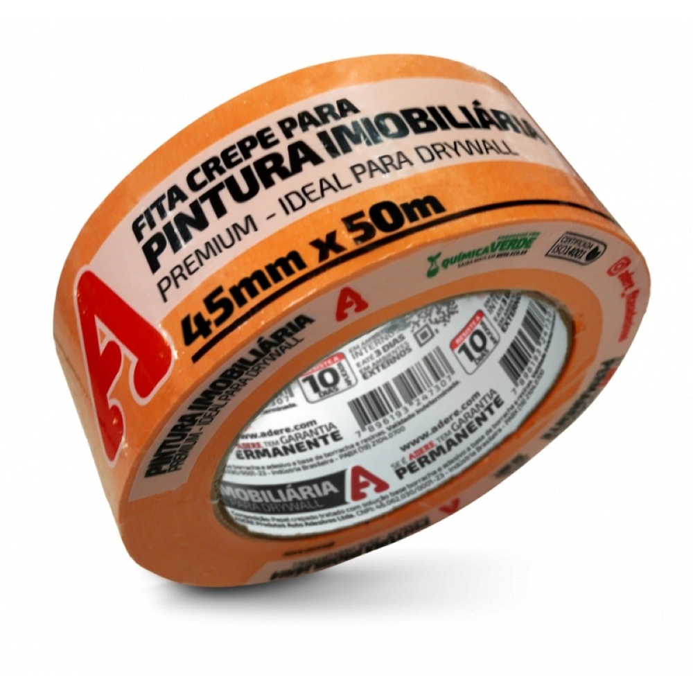 A Fita Crepe Adere A128RLS Laranja 45mm x 50m é ideal para pinturas imobiliárias, reformas e acabamentos profissionais, oferecendo alta aderência, remoção limpa e definição precisa de bordas. Produzida com papel crepado tratado e adesivo de borracha natural, garante excelente fixação sem danificar a superfície. A cor laranja vibrante proporciona maior visibilidade, facilitando o mascaramento em paredes, portas, janelas e rodapés, mesmo em ambientes de pouca iluminação.