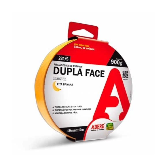 Fita Dupla Face Adere Espuma Polietileno 385 19mm x 1,5m