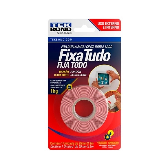 COLAS & ADESIVOS>FITAS>FITA DUPLA FACE>FITA DUPLA FACE TEKBOND ACRILICA EXTERNA 25X2M BLISTER REF 78072708210