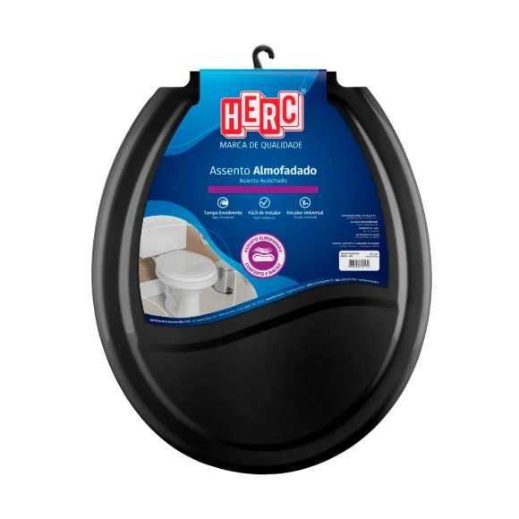 Macio. Arco almofadado. O produto possui uma tampa envolvente que proporciona cobertura total do assento.