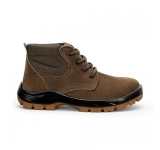 Botina de segurança com fechamento em cadarço recoberto confeccionado em couro nobuck na cor marrom, colarinho com forração interna, forro do cano em nylon com tratamento antimicrobiano.