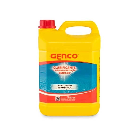 Clarificante e Auxiliar de Filtração GENFLOC é um eficiente clarificante e auxiliar de filtração para águas de piscinas. Sua ação floculante atrai eletrostaticamente as partículas de sujeira que normalmente passariam pelo meio filtrante e forma com elas flóculos grandes que o filtro passa a reter. Isso aumenta o rendimento do filtro. Os flocos maiores e mais pesados decantam para o fundo da piscina de onde podem ser aspirados normalmente. O resultado é a clarificação completa da água.