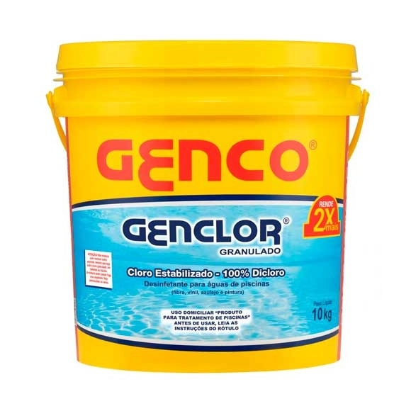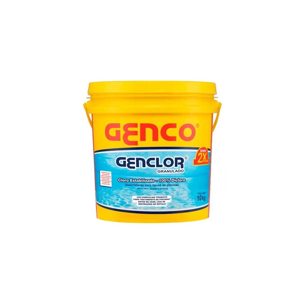 O Cloro Granulado Genclor Genco 10kg é um sanitizante de alta eficiência indicado para o tratamento contínuo da água de piscinas. Formulado com hipoclorito de cálcio estabilizado , ele atua na eliminação de bactérias, vírus, fungos e algas , mantendo a água cristalina, limpa e segura para o banho .