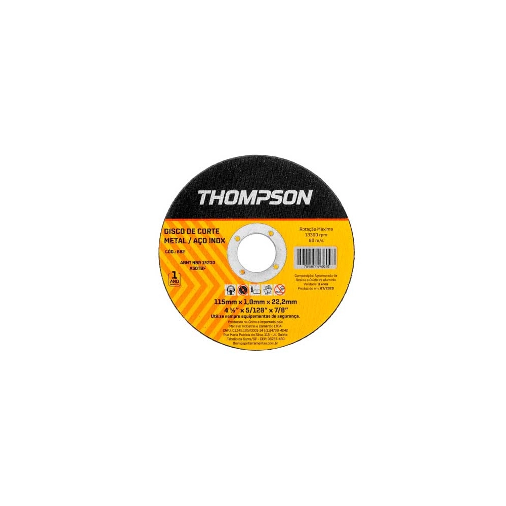 O Disco de Corte 4 1/2" para Ferro Thompson é ideal para cortes rápidos, precisos e eficientes em aço e metais em geral. Produzido com abrasivo de alta performance, proporciona excelente velocidade de corte, baixa vibração e maior durabilidade, garantindo ótimo rendimento em uso profissional e doméstico.