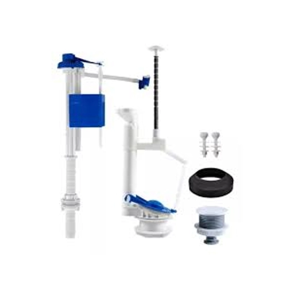 Para bacias com caixa acoplada com saída de 2" e entrada de 1/2", os conjuntos universais com acionamento duplo são indicados para todos os tamanhos de caixa e geram economia de água por possuir acionamento parcial e total da descarga.
