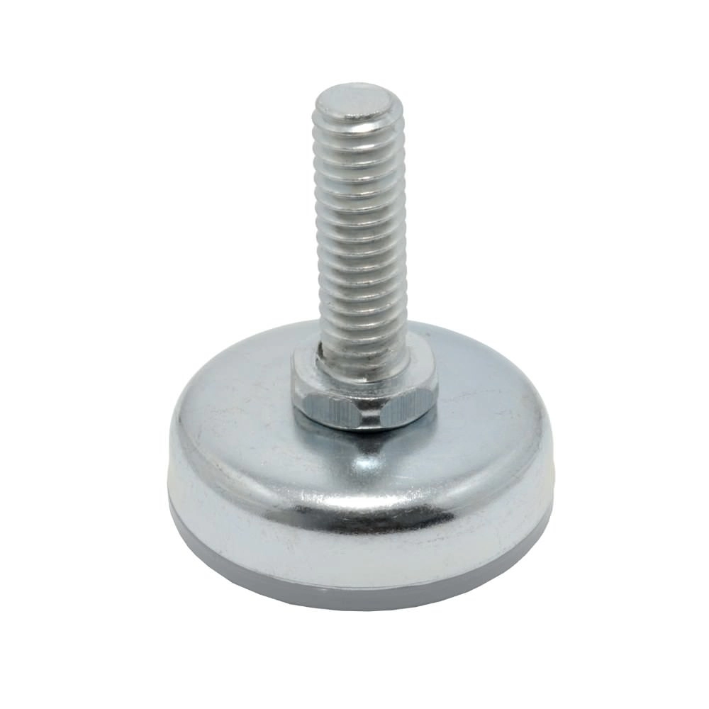 PE nivelador confeccionado em metal de alta resistência, referência M12. Possui altura de 35 mm e rosca 5/16x1, garantindo ajuste preciso e estabilidade para móveis, equipamentos e estruturas que necessitam nivelamento.