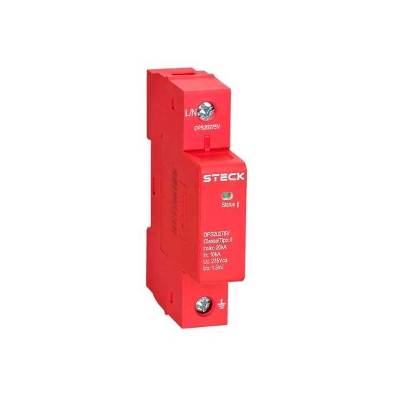 Mantenha seus equipamentos eletrônicos em segurança contra descargas atmosféricas ou mais conhecidas como raios. Para a montagem no trilho DIN, o DPS Steck tem como finalidade desviar o distúrbio de energia, causado pelos raios, para o aterramento do circuito, conservando então o equipamento eletrônico em segurança. Este equipamento é concebido na versão cartucho ou seja, não é preciso desconectar a parte fixa do dispositivo (base), o que permite melhor continuidade de serviço, redução do custo de manutenção e maior segurança para o operador técnico.