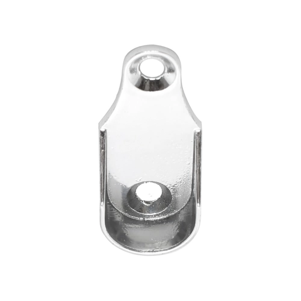 Suporte lateral confeccionado em Zamac, com acabamento cromado (CRO), referência 4124. Possui formato oblongo, garantindo resistência e estabilidade para fixação de cabideiros em móveis e armários.