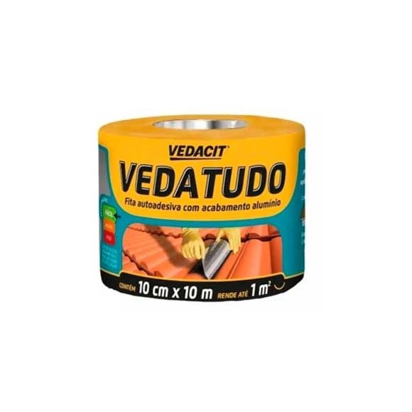 VEDATUDO é uma fita asfáltica impermeável, composta por asfaltos modificados com polímeros. Proporciona excelente aderência a diversos tipos de materiais e é de fácil aplicação. Oferece uma solução rápida e prática para reparos imediatos contra goteira e pequenas infiltrações.Possui acabamento superficial em alumínio que atua como uma barreira refletora, protegendo contra os raios solares.
