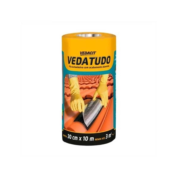 VEDATUDO é uma fita asfáltica impermeável, composta por asfaltos modificados com polímeros. Proporciona excelente aderência a diversos tipos de materiais e é de fácil aplicação. Oferece uma solução rápida e prática para reparos imediatos contra goteira e pequenas infiltrações.Possui acabamento superficial em alumínio que atua como uma barreira refletora, protegendo contra os raios solares.
