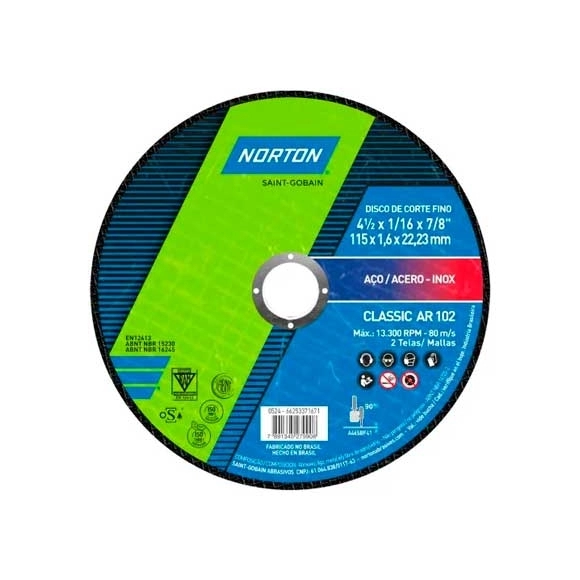 LIQUIDA ESTOQUE>DISCO CORTE INOX NORTON 4.1/2\"1,6-CLA