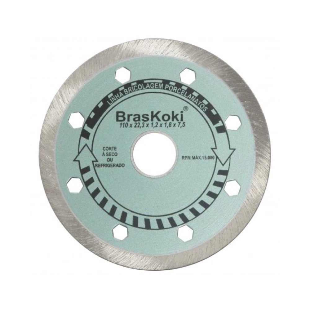 LIQUIDA ESTOQUE>DISCO DIAMANT. BRASKOKI 110MM CONT. SECO E REFRIG. PORC.