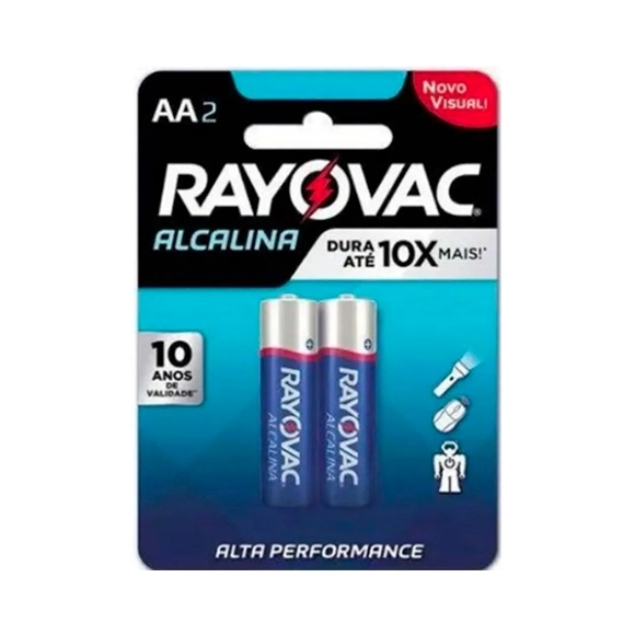 Modelo: AA (pequena) Tipo: Alcalina Marca: Rayovac Voltagem: 1,5V por pilha Embalagem: Cartela com 2 unidades