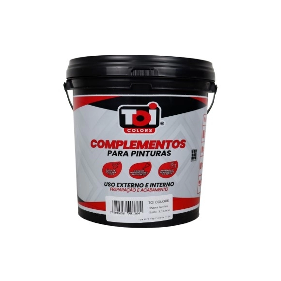 A Massa Acrílica TOI Exterior é indicada para nivelar e corrigir imperfeições em superfícies externas e internas, proporcionando acabamento liso e uniforme antes da pintura. Desenvolvida com base acrílica, oferece alta resistência à umidade e excelente aderência, sendo ideal para áreas expostas às intempéries.