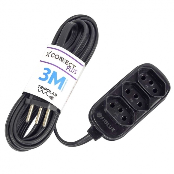 PROMOÇÃO>EXTENSAO FIOLUX 3 METROS 2P+T 3 TOMADAS PTA