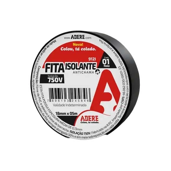 Fita Isolante Adere 9121 18mm x 5m Preta