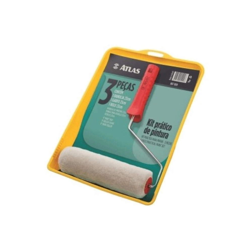 Kit de pintura com 3 peças contém: Bandeja de pintura (1623), garfo c/ buchas (33/23SR) e rolo de poliéster de alta densidade de 23cm (773/19).