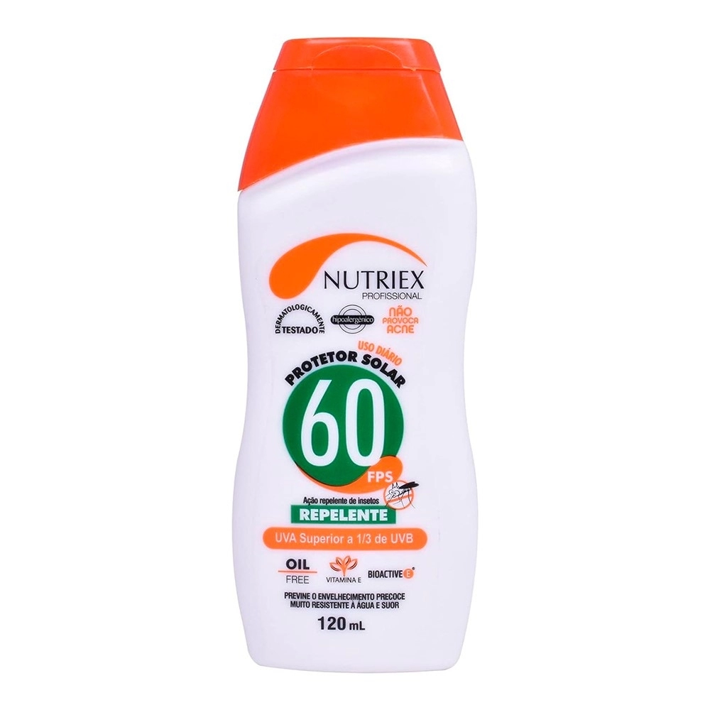 EPI>PROTEÇÃO E SEGURANCA>PROTETOR SOLAR>PROTETOR SOLAR FPS 60 1/3 UVA C/REPELENTE 120ML NUTRIEX REF 62802