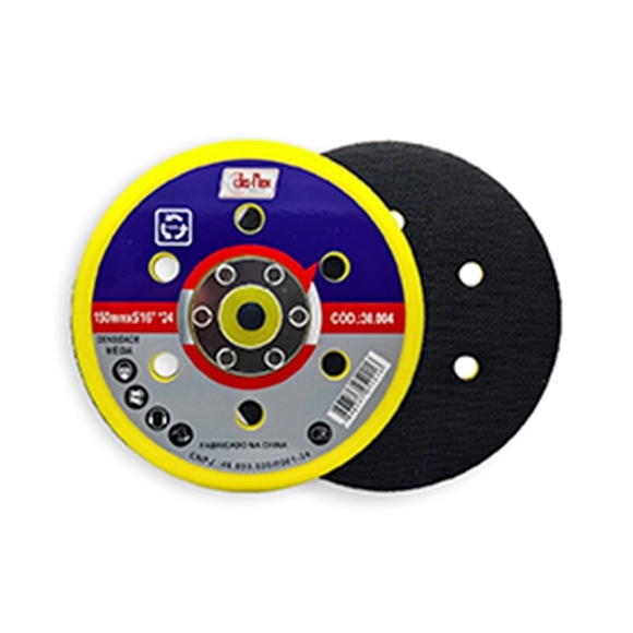 MAQUINA ELETRICA/BATERIA>ACESSORIOS>SUPORTE P/ DISCO>SUPORTE PARA DISCO LIXA VELCRO 150MMX5/16 ORBITAL 6 FUROS REF 30004